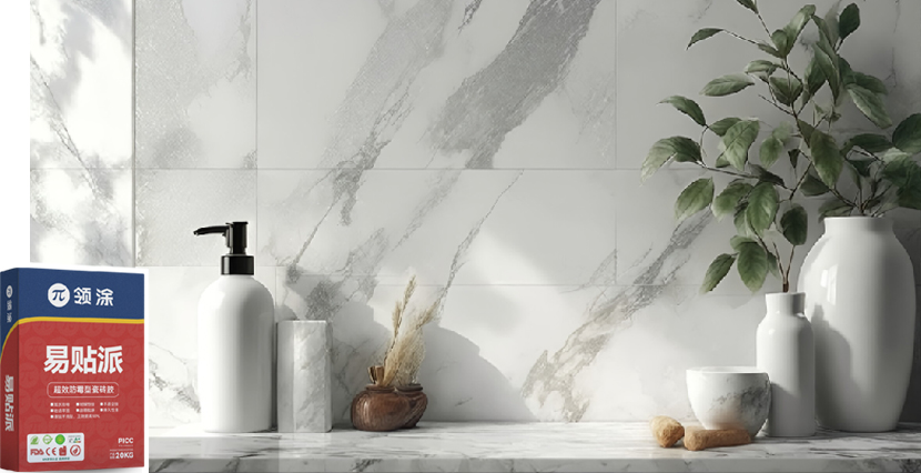 易贴派(超效防霉型瓷砖胶),经过精心选材,配以领涂先进的生产工艺精制而成,其主要成分为PO 425水泥、金刚砂、可再分散性乳胶粉等高分子聚合物改性助剂,具有加水即用、耐候性佳、不易空鼓、粘结牢固、容易批涂、持久性佳,并且薄贴不流坠,适应平整度较差的基层,工效提高50%。