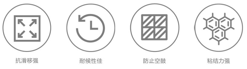 瓷砖胶仅限内墙贴砖使用,不建议外墙使用。适用于吸水率≥6%、尺寸≤600×600mm的砖。